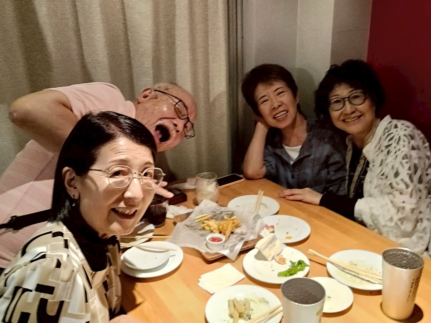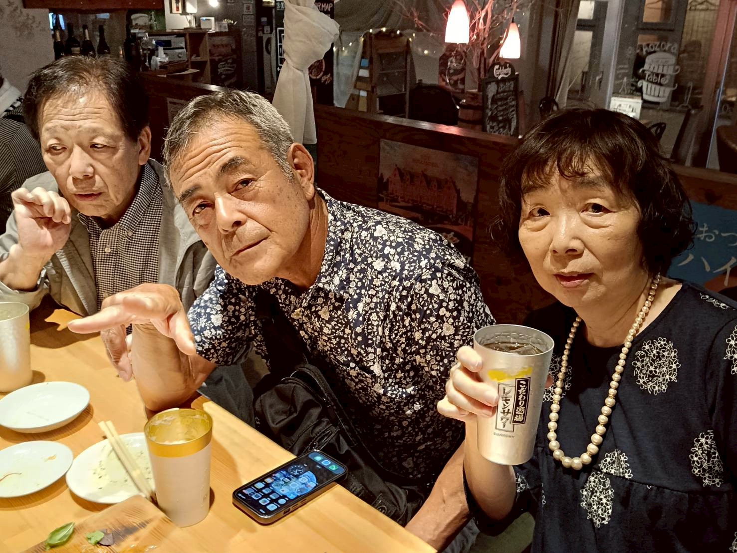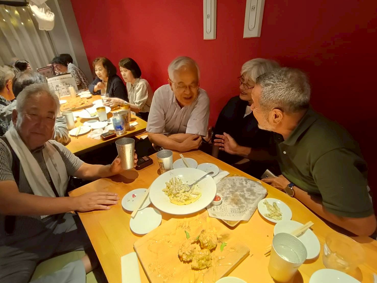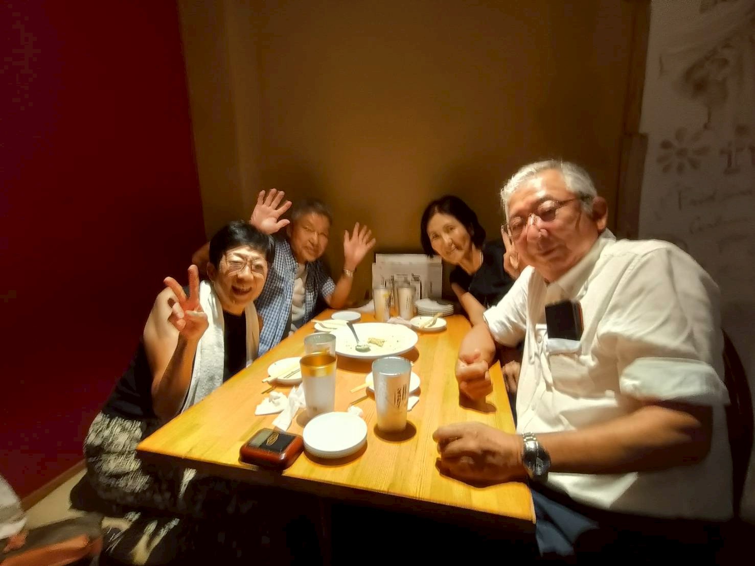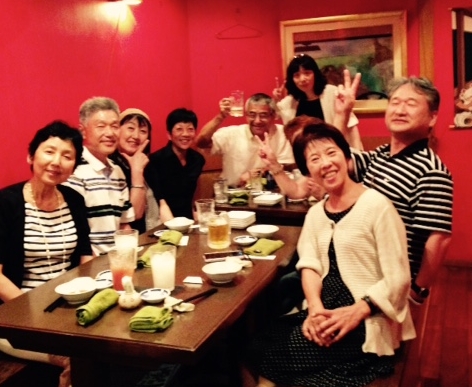 | 2組兼本さんからの報告です 8/14に、1・2組 B1クラスの同窓会をしました。 於)チャーリーズ 全10人。 「女ばっかり」昔の仲良しで、昔のこと、今のこと、ワイワイ楽しくやりました。 2次会はキーストン 英ちゃん、黒1点も加わり、楽しい夏休みでした。 ![]() |