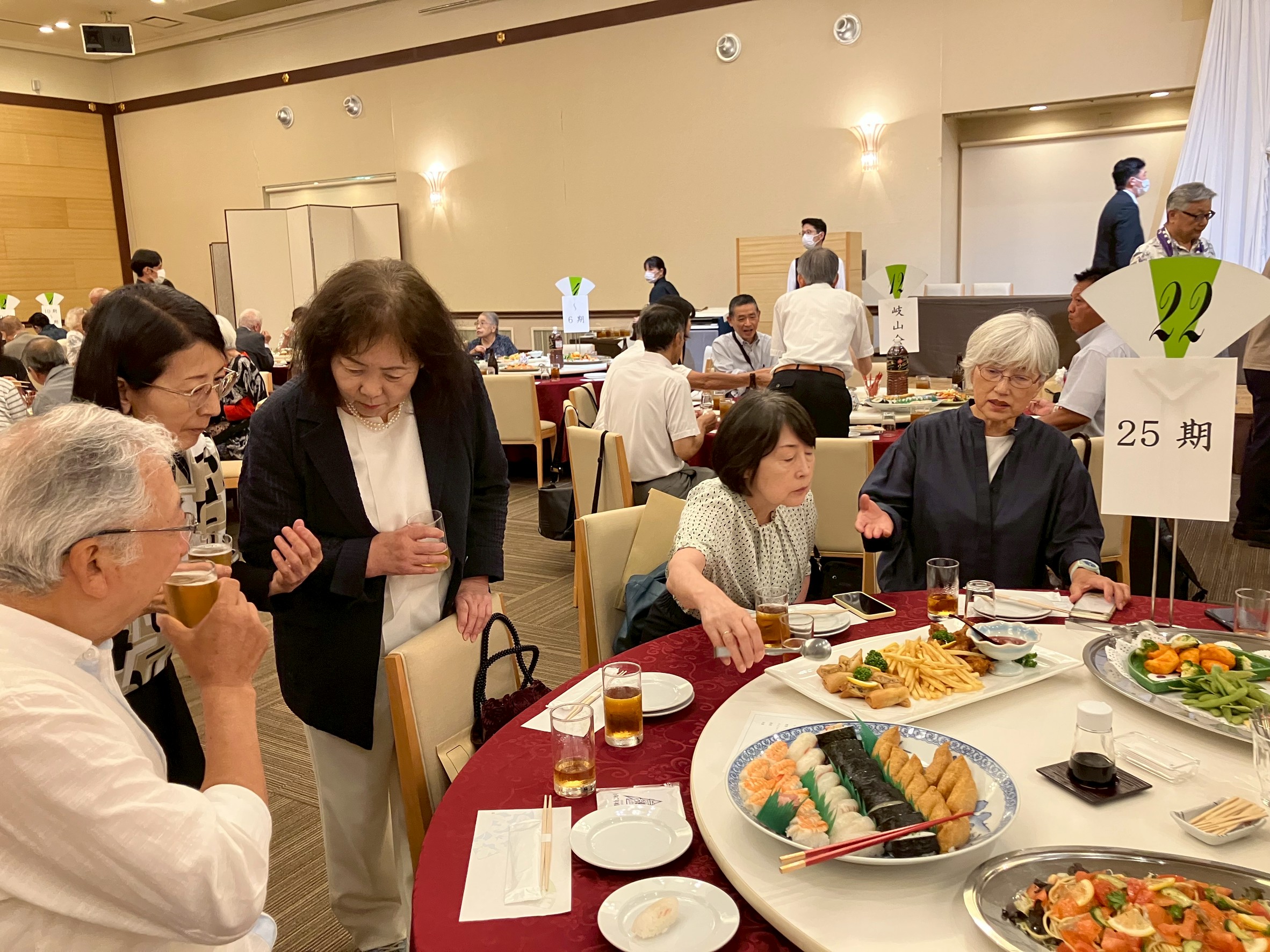 | 8月9日に岐山会総会がありました。 いつもの体育館が改修工事の為、遠石会館が会場です。 次々ロビーに集まる懐かしい顔に、すでにみんなテンション上がってます。 会場では、8人がけの丸テーブルが所狭しと並んでいます。(でも歩く余裕はあります) 他のテーブルは「◯期?◯期」と複数期なのに対し、25期は、丸々2テーブルありました。(18人出席) 恒例の総会が始まり、校長先生から「今年から白いポロシャツ導入しています。」とご自身で着てこられたポロシャツをご紹介いただきました。 「これは、生徒からの要望で取り入れたのです。教師も、今の時代、生徒からの発信というのに感動しました」とも言われてました。 その後、総会も滞りなく終わりお待ちかねの元長官の講演です。 「始まる前に、実行委員長さんに法律の話をしようと思うと言ったら、『いやぁ、それは?』と言われたので、原稿を準備してきたのですが、違う話にします。」と始まりました。 はじめに、長官になって警備がついた事。自由に外出できなくなって大変だけど、ちょっぴりお忍びがあったらしい。 それ以上に大変だったのが、皇室行事への参加。 三権の長としての、色々な行事に皇居へ伺うと、必ず毛筆で、「最高裁判所長官~」と役職名から名前まで一行に書かなくてはいけなくて、初めての日は最後の方は相撲の番付表の様な字になった。記帳台の前には、若い職員が不動で立ちじっと手元を見ているので、緊張で手が震えていた。との事。 他にも外国の最高裁判所長官の訪問があり、事前のレクチャーで「あれもダメ」「これもダメ」と沢山規制があったが、最も厳しく言われたのは「相手の長官に『今度是非、お越しください』と言われても決して行きますと言ったらダメですよ。」 それで、ちょっと感じの悪い対応になったのが心残り。(笑) 同期で国際刑事裁判所所長の方のお話もあり(これは、上手く内容まとめられないので内容省略)、その後締めに入りました。 原稿を見せながら「今日は『法の支配』について話す予定でした。原稿も書きました。 でも、皆さん、政治経済や公民の時間、殆どの人寝てたんじゃないかなぁ。 『法の支配』をここで話しても、無駄とは言わないけど役に立たないかと思って急遽、準備した原稿と違う話をしました。 11月に徳高の生徒への講演の機会を頂いているので、良い話は若くて将来のある人にという事で・・・」そこで、大爆笑と拍手喝采で終わりました。 (以上25期掲示板のトイレさんの記載より転記) 総会終了後、25期のメンバー17人(仕事の都合で一人欠けました)は、二次会までは少し時間があるので、徳山駅の徳山DECKのMINATOE198というお店で軽く1杯飲んで時間をつぶし、二次会会場の青空公園側の「アオゾラテーブル」というお店になだれ込みました。二次会からは一人加わり、再び18人でワイワイガヤガヤと、話尽きることなく2時間半を過ごしました。更に、飲み足りない(話し足りない)人は三次会へと続き、またまた楽しい時間を過ごしたとのことです。 ![]() ![]() ![]() ![]() ![]() ![]() ![]() ![]() ![]() ![]() ![]() ![]() ![]() ![]() ![]() ![]() ![]() ![]() ![]() ![]() |