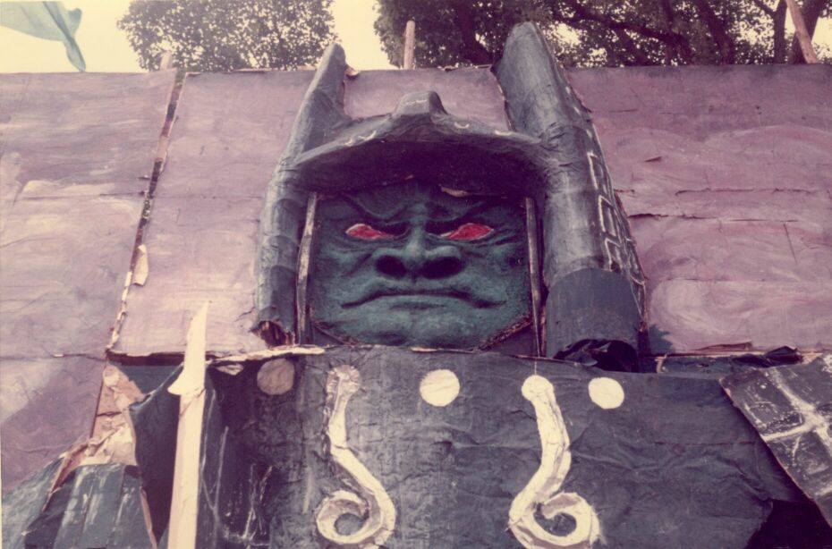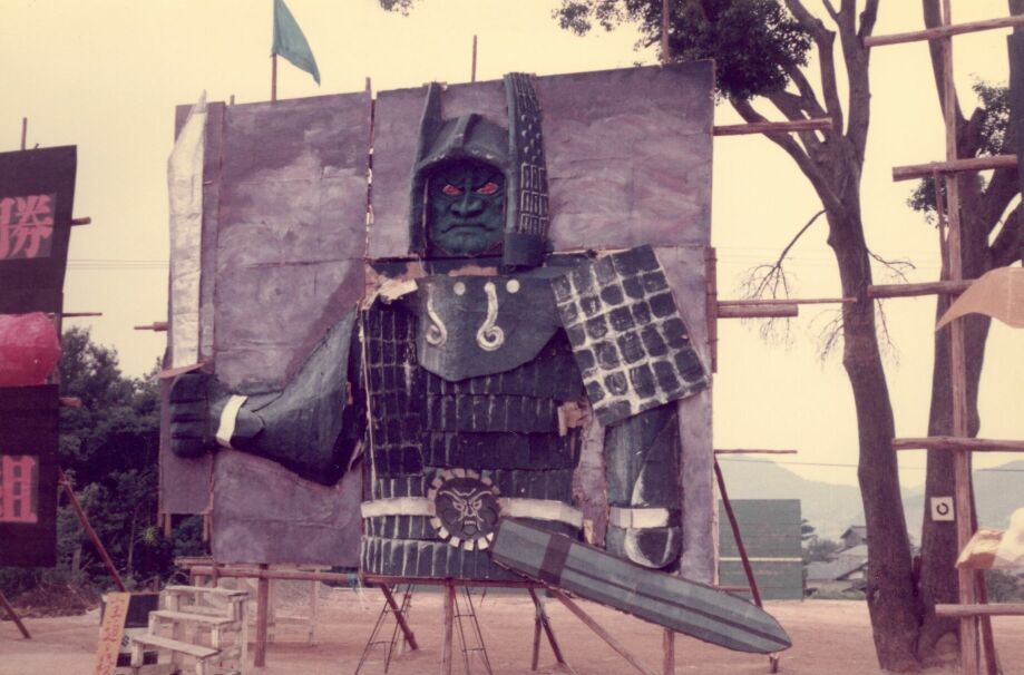 青組のアーチは大魔神。赤は天狗、白は白い天馬、黄は黄金バットでした。