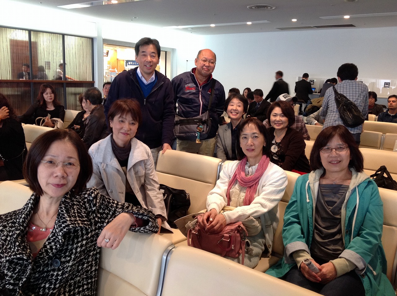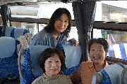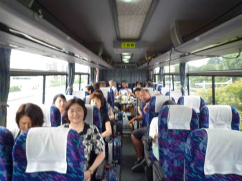 今回は、26名の、品のある人ばかりでしたので、適当な幹事の誘導にも、よくついてきていただきました。徳山からは、さくらの自由席で行こうと呼びかけましたが、ラッシュのごとき満員状況で、皆さん文句も言わず立って岡山まで・・・東京組の多くは、前日入りで岡山観光したそうです。ヒメは、東京駅まで遠いのに、朝暗いうちから頑張って出てきてくれました。岡山駅集合も遅れる人も無く、渋滞等の障害があったものの、スムーズに進めることができました。バスでは、スタートから呑み始め、しっかり酔ってしまいました(サロンバスで後ろのサロン部に座った人だけですが)。停車の度の人数チェックは、カウント中に判らなくななってまして、トモさんが、チェックしてくれたので、なんとか置き去りの人を作らずにすみました。