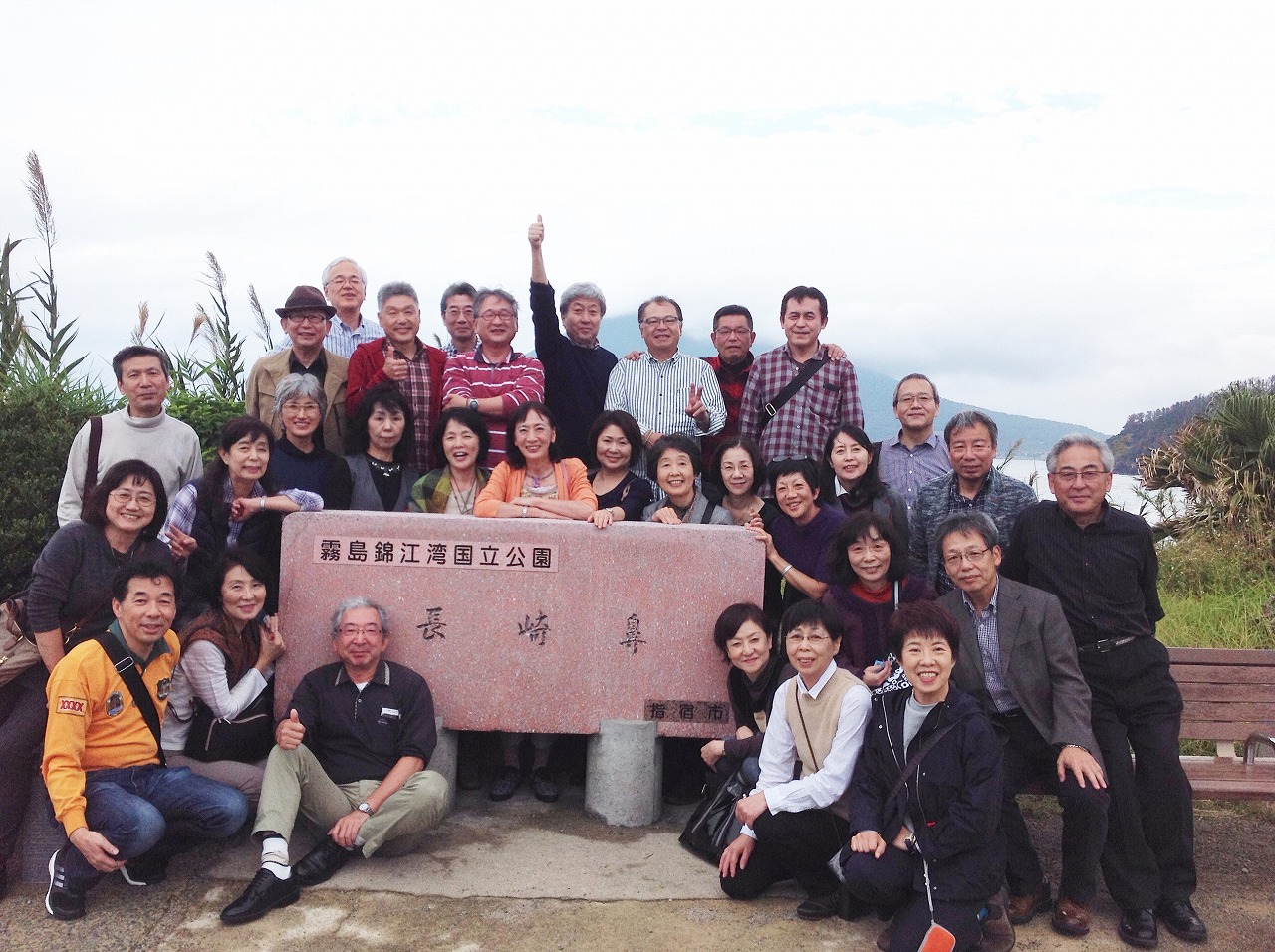 「イッシー」で有名な九州最大の大きさを誇る池田湖でしばし休憩した後、なんとか天気も持ちそうなので、長崎鼻に向かうことにしました。ここは薩摩半島の「すんくじら」(標準語訳:端っこ)に位置し、今では竜宮伝説よりも、サスペンスドラマの舞台によく使用されていることで有名な景勝地です。(写真3)左手に内海である錦江湾、右手に外海の東シナ海と二つの海が同時に見える雄大な自然に、数名のやんちゃな還暦男子・女子は、岬の突端まで、歩いていったのでした。(写真4)