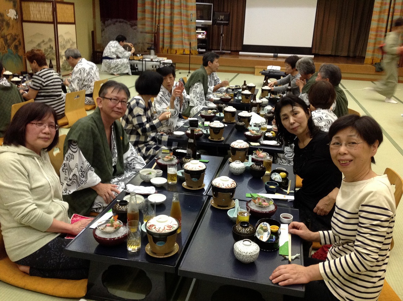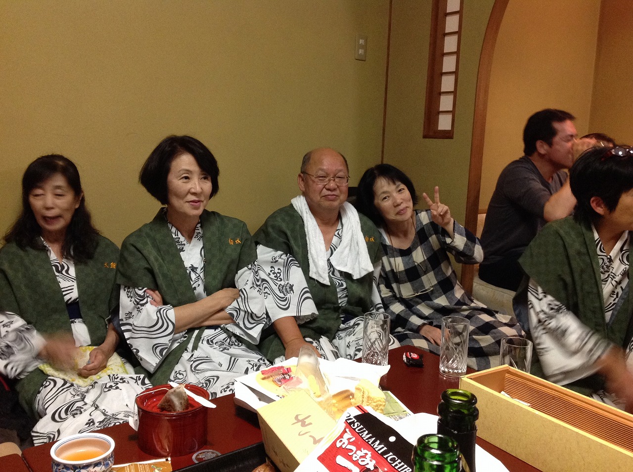 2次会は、705号室に集まり、狭い部屋に全員集まり、会話が弾みましたね。私は、女性の湯上がり姿を見て、皆んなスッピンで美人だなとあまりおしゃべりせず、ひとり妄想を楽しんでいました。(根っからの助平で申し訳ありません。)