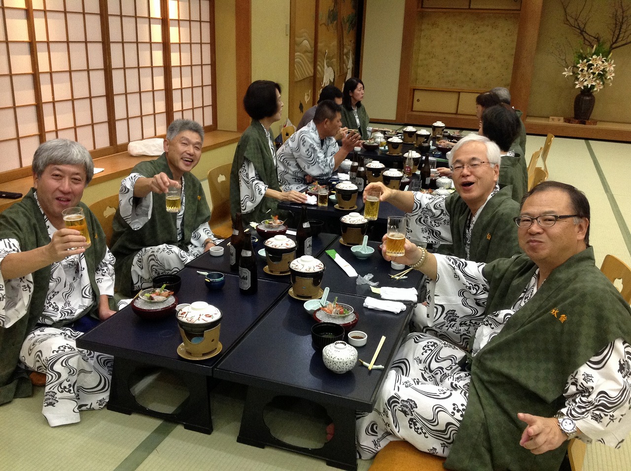 申し訳ないことに、到着から宴会まで時間なく、さっさと風呂に入り、7時から宴会で、適当に酔ったところから、皆さんに近況報告をしていただきました。それを話のネタに、周りの人とくつろいで話してもらったと思い込んでおります。