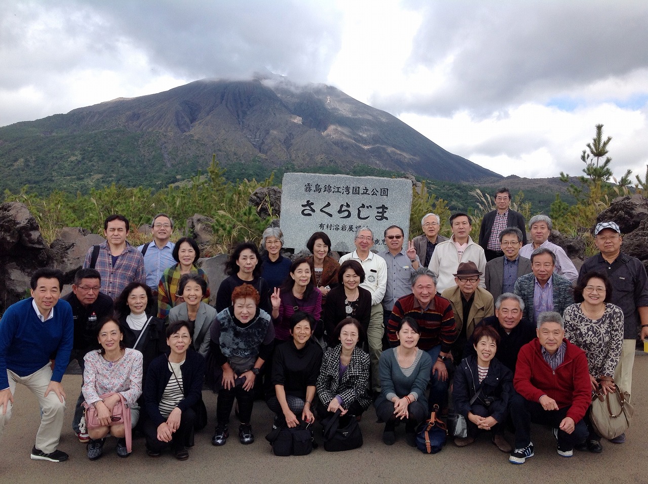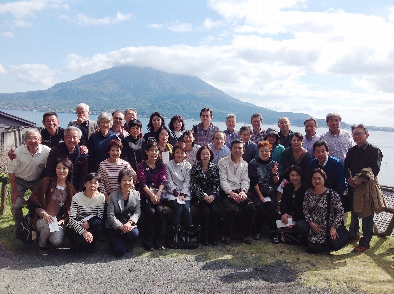 当初の曇り予報から予想に反して晴天となった二日目は、絶好の観光日和。気温は24度と11月の鹿児島にしてもやや高めでしたが、指宿から錦江湾沿いに鹿児島へと向かう国道を晴天の中で走れるとは何たる幸運!!長年、鹿児島に住んでいても、この日のような景色にそうそう巡り会えません。桜島の稜線、山肌の何と美しいことか!!二人の幹事が愛してやまなかった桜島の魅力が、皆さんに分かってもらったようで、とても晴れやかな気分になりました。