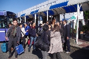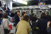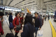 積み込んだアルコールは、アッ と言う間に奴等の胃袋の中に流し込まれたのでした。「もうないよ」と言ってるのに、未練がましくバス前方の保冷BOXを覗きにきた輩が、複数名いたことも、ご報告しておきます。ビールのせいか? トシのせいか? 何ちゅうても小用が近いので、トイレ休憩をとりながらやっと渋滞を抜け出し、徳山組の乗った列車が着く、ぴったり2時頃、松本駅到着!松本空港から合流の下関の田中君ともども、徳山組と感動の再会を果たし、ホッ!!