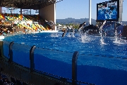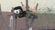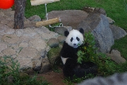 動物たちの少し滑稽でほのぼのとしたアニマル・アトラクションや、多くのイルカが一斉にジャンプしてみせるマリンライブの迫力を楽しんだあと、ケニヤ号乗車に時間を削られながらパンダとのご対面。