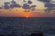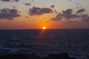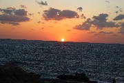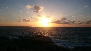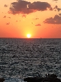 まん丸だった夕日が水平線に触れた瞬間、下側の輪郭が水平線の左右から引っ張られたように広がり、徐々に水平線の下に沈んでいって、夕日上端の最後のかけらがスッと消えたとき、水平線を境にこの世とあの世がひっくり返るパイレーツ・オブ・カリビアンのワンシーンがフラッシュバック。みんな感動の面持ちで拍手。