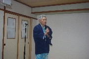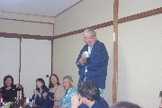 7時20分ころ、部屋にもよらず宴会場に直行してきたケンちゃんを迎える。しばらくそれぞれの席で隣り合わせた人との歓談と料理を楽しんでもらい、7時50分ころから初参加の人のスピーチ。