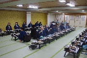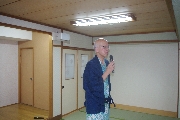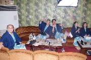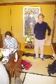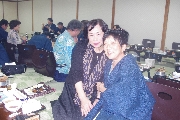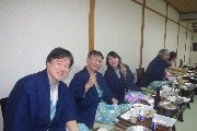 三次会は宴会部屋として準備した320号室で始まりました. H君が携帯電話関連のレアグッズをここに持ってきたため,一同大騒ぎ. 当初二日目のバス車中で予定していたゲームを急遽することに決定しました. 皆から提供された景品獲得を目指して繰り広げられた真夜中のビンゴゲームも忘れられぬ思い出になるでしょう(写真10).他のレアものは,T君持参の全国裁判所絵はがきでこれも手に入りません.S君が持参してきた「獺祭ミニセット」もなかなかでした。明くる日には各自募金して頂いた事を付け加えておきます. こうして, 深夜1時過ぎても部屋のあちこちで「語り合って」いました(写真11,12)が, 今流行りの三原則:「止める, 冷やす, 閉じ込める」が適応される事態には至らず, 監視役をお願いしたK夫妻が登場する場面もなかったと聞いています.