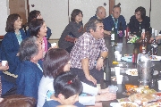 そして、いよいよバージョンアップしたスライドショーの始まり始まり。今回は男女ほぼ同数だったので、男女無関係のくじ引きで席順を決めたのですが、やはりこういう場合のくじ運ってありますね。女子に囲まれた幸運な男子がいた反面、左右向かい全て男子という所(写真5,6)もありましたが、宴会も半ばを過ぎると入り乱れての丁度いい感じになってきます。