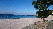 二日目の朝は、5時から開いているお風呂に入り、7時20分からの朝食の前に、何人かの人はホテル前の白良浜を散策。三々五々朝食の席に着くと横のほうでは早速ビールの注文。朝からビールかい?と見ていると、トモちん「家でこねーなこと(朝からビール)したら、はー嫁さんにぶちおこられるいね」と漏らしながらも嬉しそうに飲んでいる。この旅行は正月並みに羽目を外せるようだ。