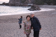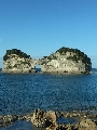 予定を10分ほど遅れて千畳敷へ。ここは、南紀の太平洋と夕日観賞をうたった観光先だが、一時覚悟していた雨天の場合はカットするつもりだった。ところが一転、強風ながらも晴天に恵まれ景観は最高!
