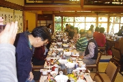 7時20分には全員朝食を始めている、と思ったら一人だけ欠けていた。ユウちゃんだ。30分を過ぎ、さすがに心配になったミヤちゃんが部屋を見に行ってユウちゃんを連れてきた。試しにビールを勧めてみたら仲居さんに水を所望していた。