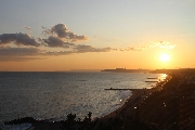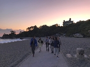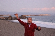 海は広く、島一つない、これが水平線なんですよね。これを見て育つと、大きな心になるんですかね。ちょっとした島くらい欲しいですね。到着が遅かったので、日の入りを見れませんでした。もともと東向きの浜なので、水平線に沈む夕日は望めません。したがって、記念館から夕日が見れて(到着が遅れて)良かった。引き上げるときには、夕焼けに西の山(岬)の端が浮き上がり、景色として満足です。