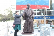 何人かは、記念館の前の龍馬さん(銅像)と握手してました。