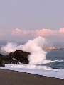 皆で、砂浜で記念撮影をしたのですが、一発目は、波打ち際に近すぎて波を受け、靴、ズボンの裾は”びっしゃ”です。龍馬像に向かう途中、桂浜の端の岩に砕ける波は、太平洋でした。