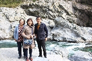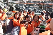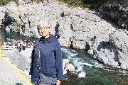 船に乗る前に、商業ベースの人に促され、記念撮影!この手の写真は買ったことはなかったのですが、今回は、ついつい帰りに買ってしまいました。25人乗りの遊覧船なので、1名は舳先のあたりに座布団をひいて乗船。2億年かけて作られたと言われる渓谷は、隆起した地層が斜めに走り、削り取って作られた川なんですね。地層の向きは、大歩危と小歩危で反対を向いてる・・・など、うんちくをいただきました。ただ、船頭さんの説明は、あまり上手ではなかったような・・・。遊覧ですから、あまり急流ではなく、澄んだ水は、深さによって色が違っており、泳いだら夏でも寒いんだろうなと思われます。