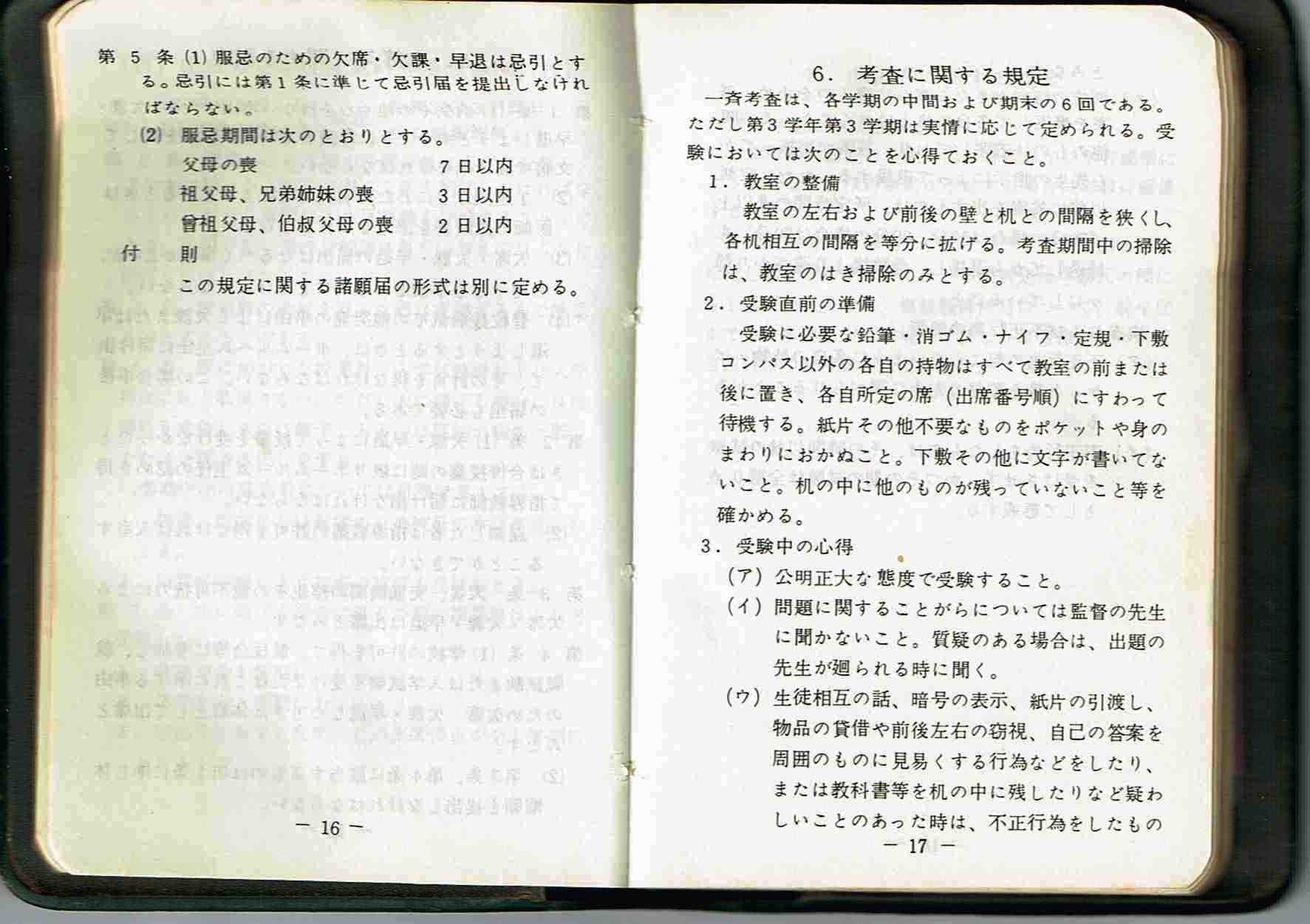欠席等に関する規定 考査に関する規定